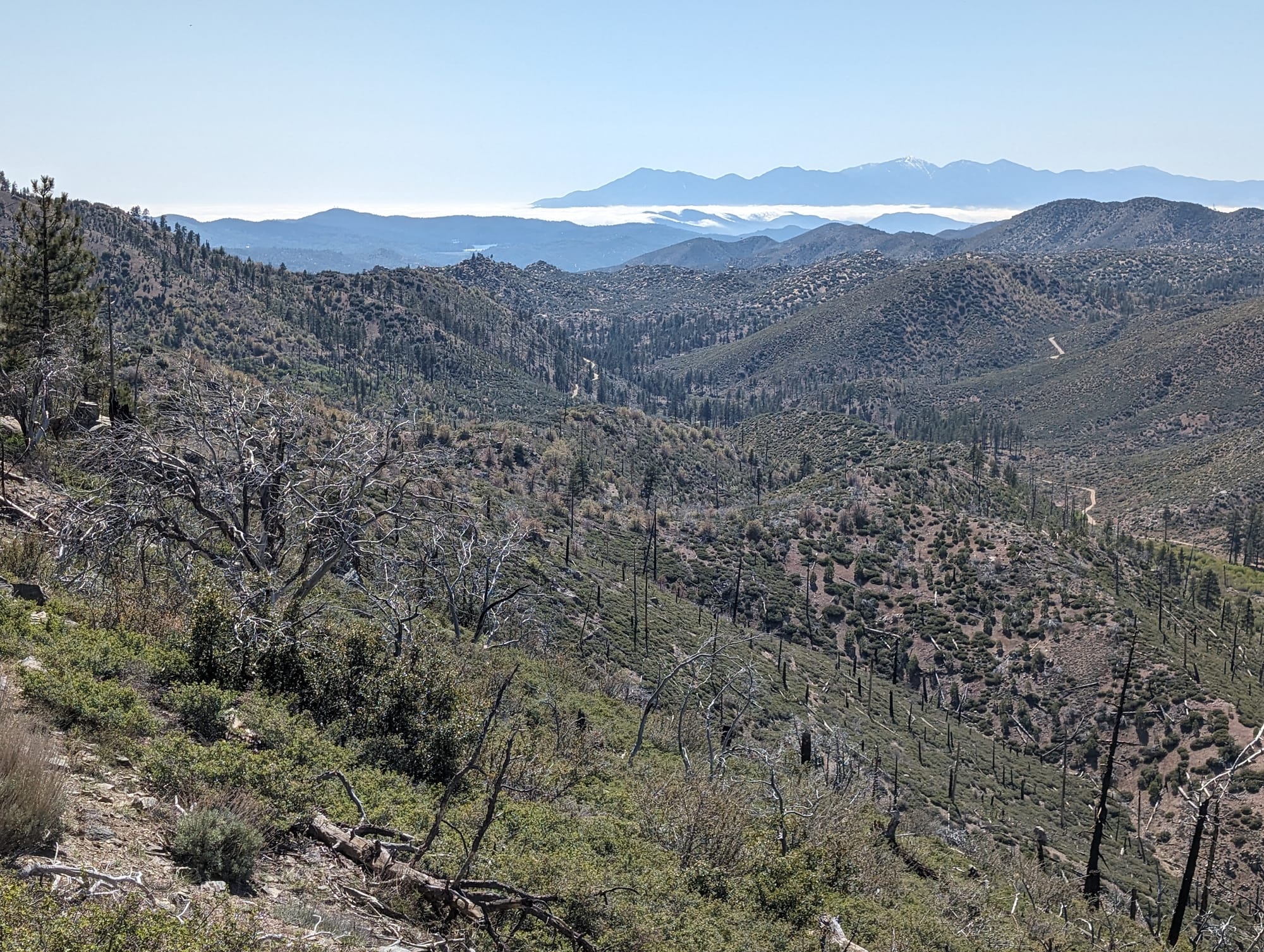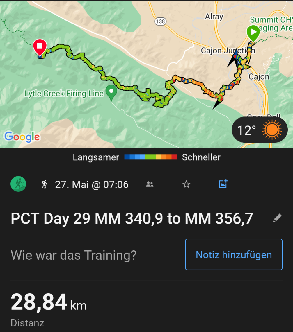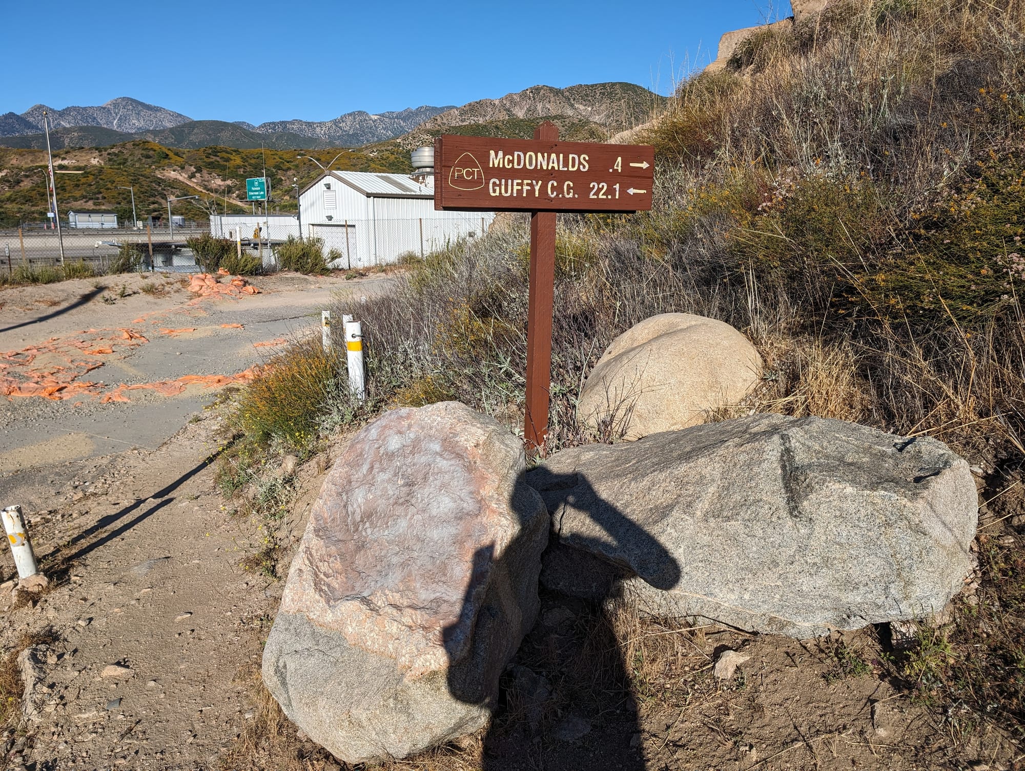 Im letzten Abschnitt des Mission Creek habe ich mir wohl die Achilles Sehne verletzt und musste nach einen erfolglosen Versuch weiterzulaufen abbrechen und bin wieder zurück nach Big Bear um zwei weiter Tage zu ruhen. Am Don 23.5 ging es dann wieder weiter. Die ersten beiden Tage waren da die bisher Anstrengenden, wegen der Sehne und weil ich aus irgendeinem Grund fürchterlich erschöpft war. Zum Glück waren die ersten drei Tage fast ausschließlich Abstieg und nicht besonders anspruchsvoll. Das Frühstück bei MacD war dabei eine erfrischende Abwechslung,vor allem die Soda Fontaine, also das unbeschränkte Nachfüllen der Limo war für meine ausgetrocknete Kehle eine Wohltat. Das musste dann in den nächsten zwei Tagen reichen, da Kamm dann ein 17 Meilen Abschnitt mit kontinuierlichen Anstieg ohne Wasser. Am Mo 27.5 hab ich an der letzten Wasserstelle ein lange Pause, 5L Wasser geladen und zwei Liter auf Vorrat getrunken um am Nachmittag die ersten 9mi bis zum Zeltplatz aufzusteigen. Tags drauf dann nochmal 12 mi bis zum Trailhead. Von dort habe ich dann direkt ein Ride nach Wrightwood von einer Gruppe älterer Day Hikers bekommen. Jetzt mach ich wieder Zero, hab Pizza und Bier und bin gerade ziemlich Faul.