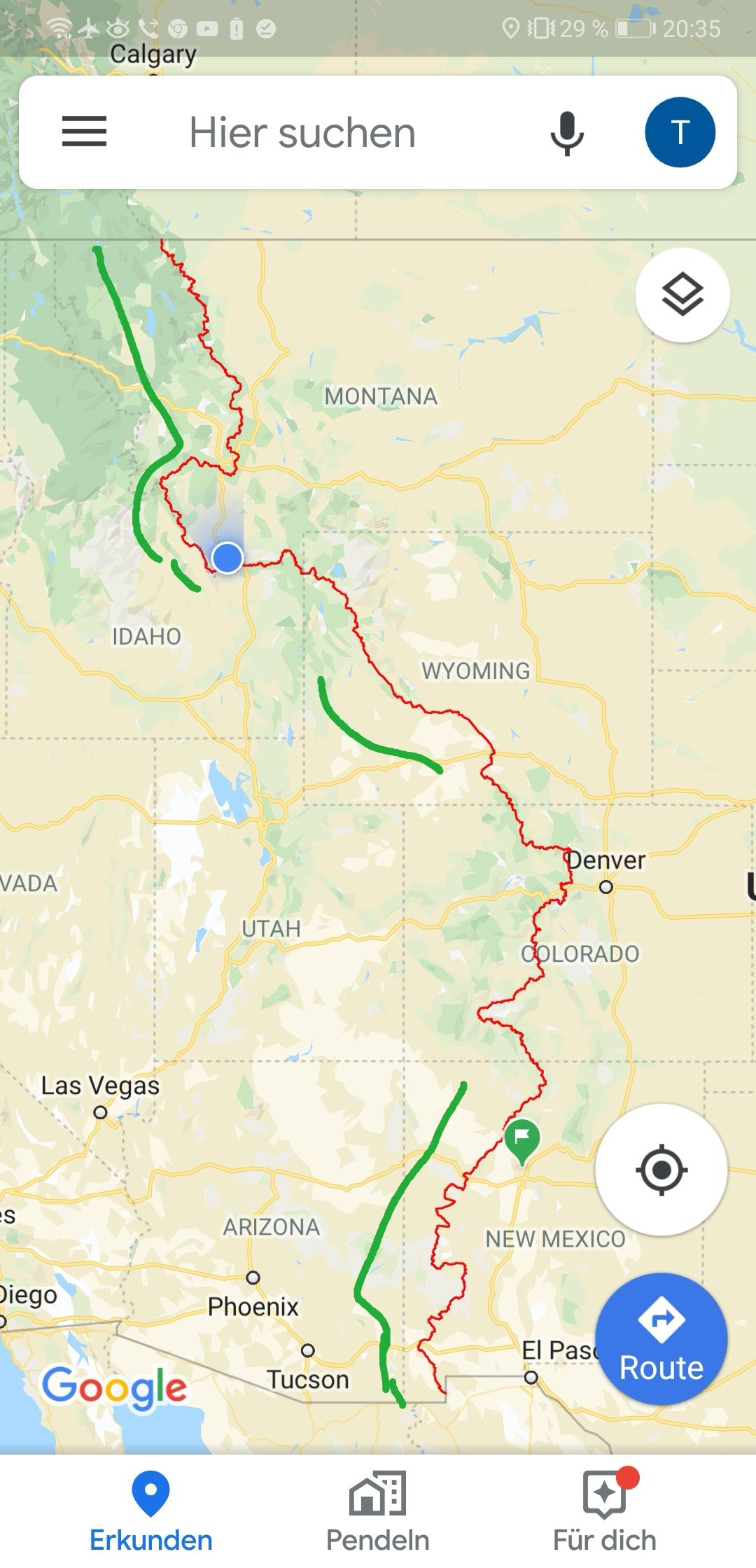 Hier noch eine Karte des CDT CDT. In Grün hab ich die Strecke markiert die ich schon gewandert bin.