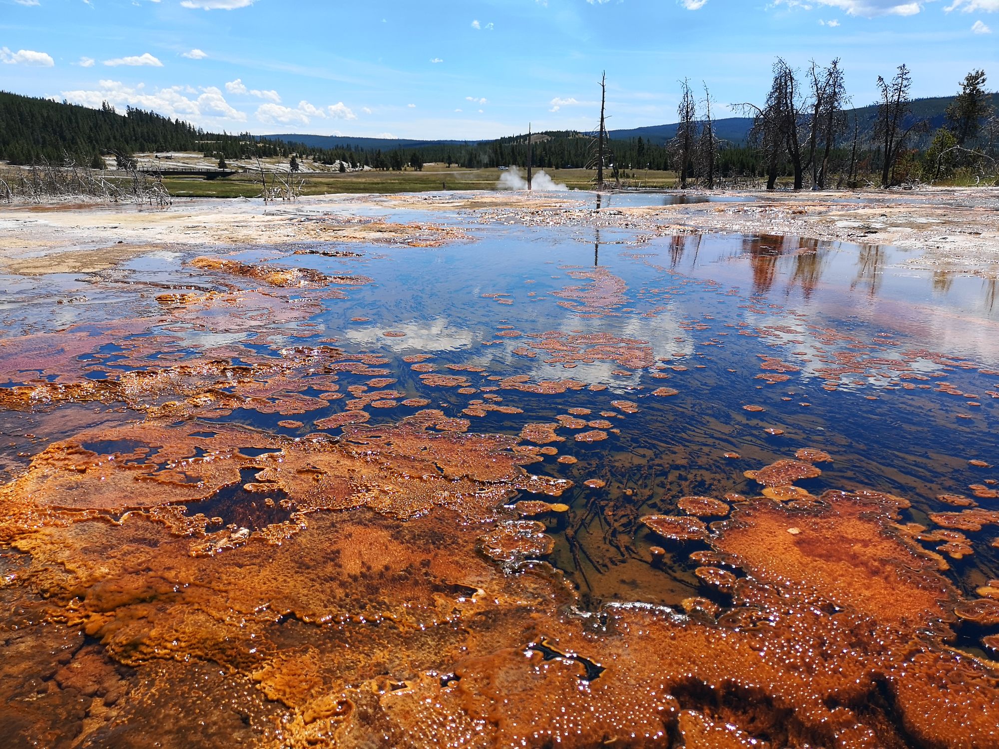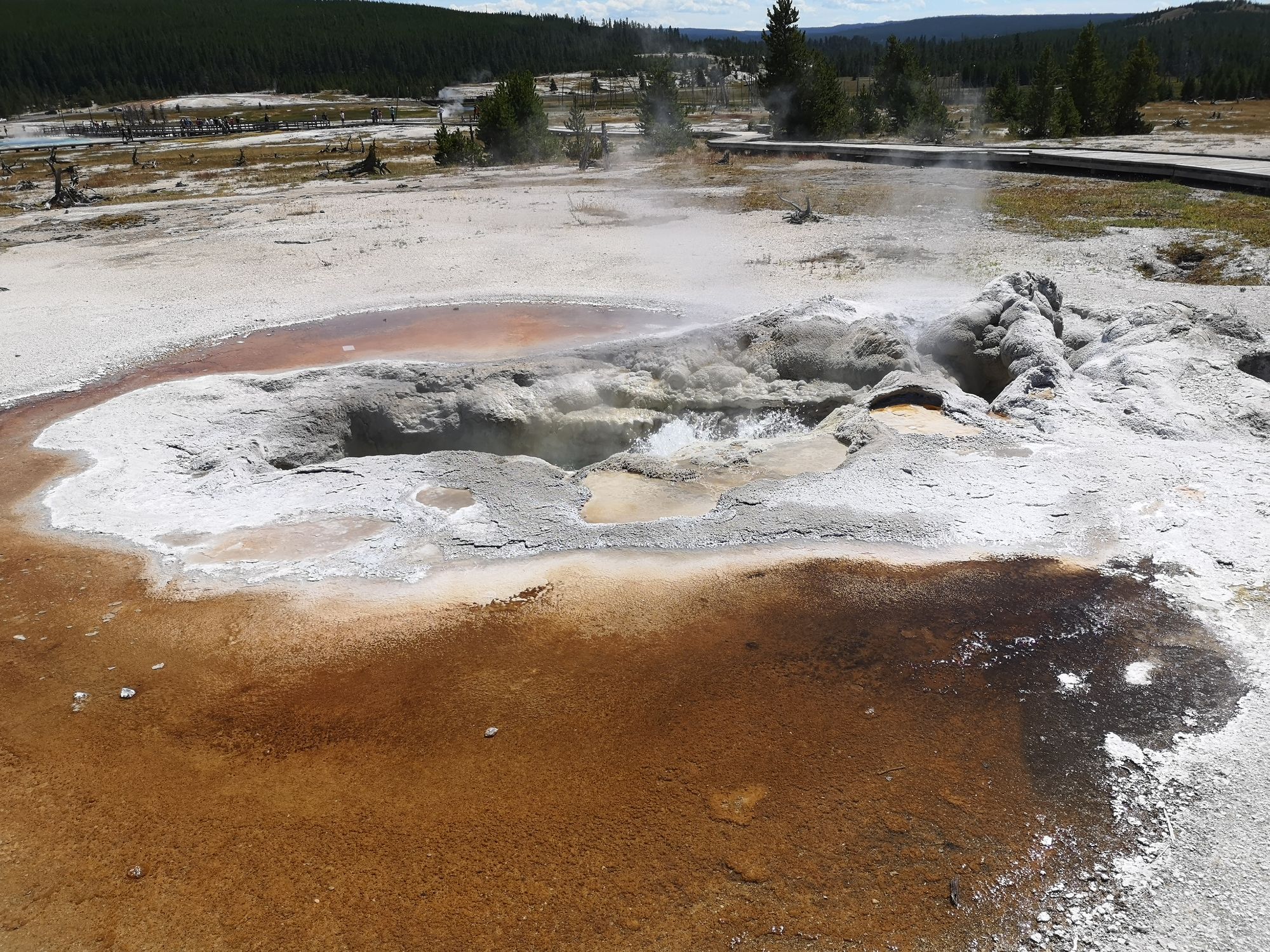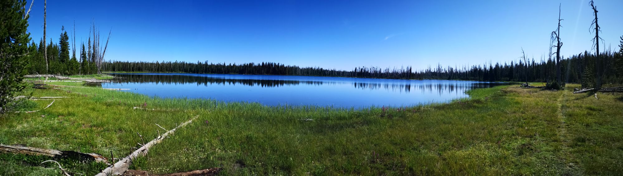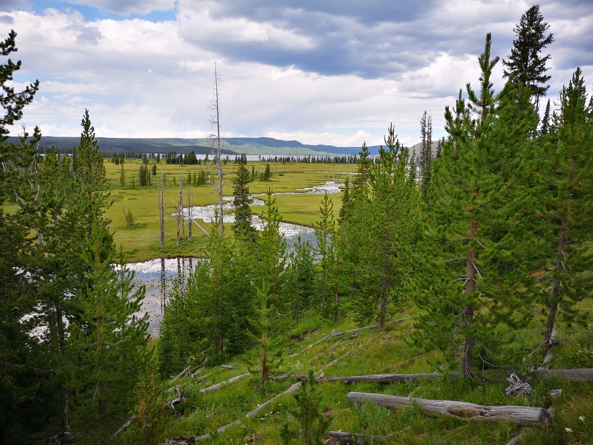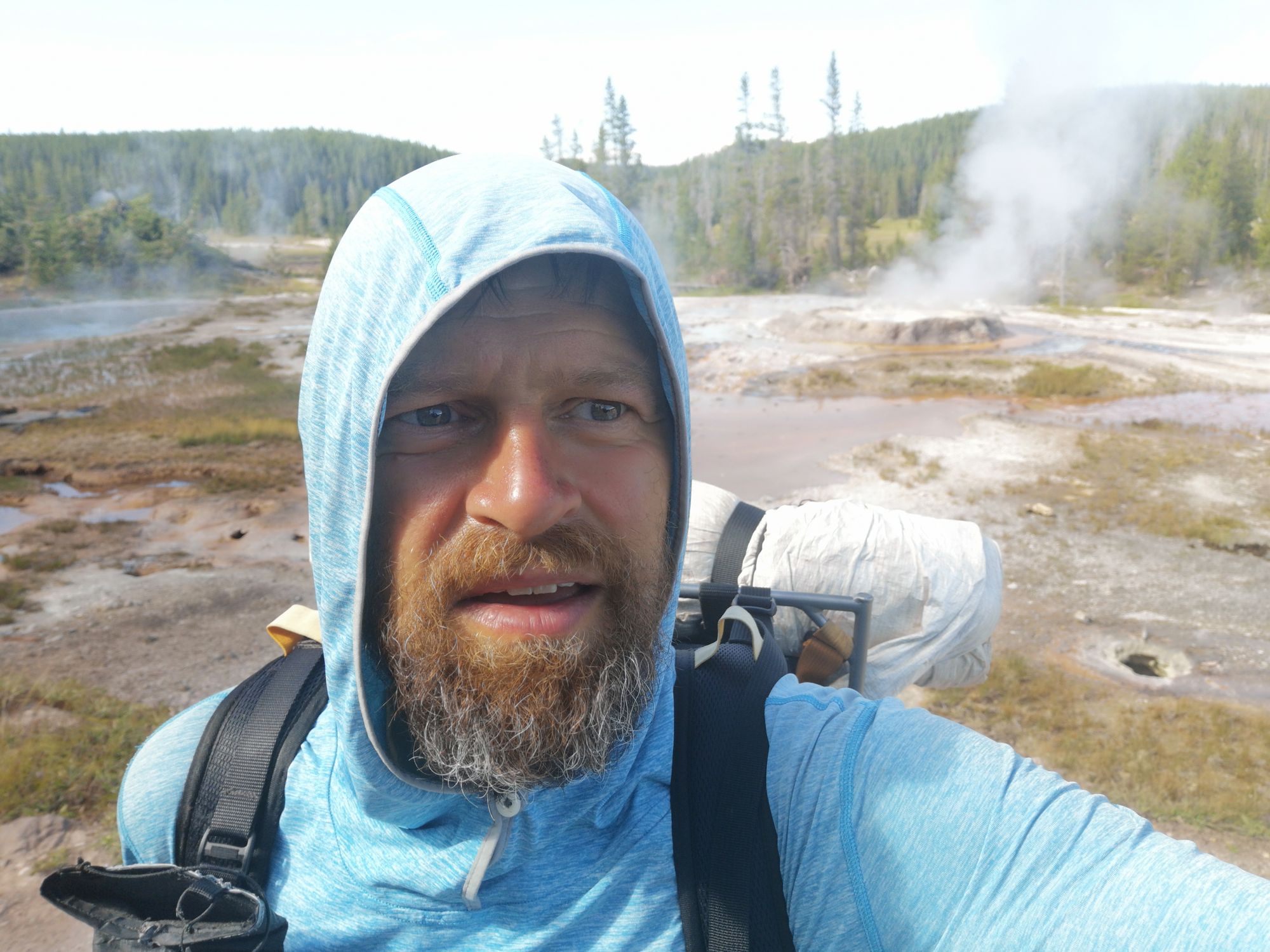 War sehr gespannt auf den Park, der hike rein von Island Park/Mack's Inn war leider größtenteils nur Roadwalk, ging aber zügig und bequem. Nachdem ich dann wieder auf den original CDT gestoßen bin kamen die Moskitos. Da ich noch kein Permit für Camping im Park hatte habe ich kurz vor der Parkgrenze genächtigt. Am Morgen, ich schau gerade verschlafen aus meinen Zelt, kam Twiggsy vorbei. Kurze Unterhaltung und ich erfahre das er, Toast und Snacks gerade mal 1/2 Meile hinter mir gecampt haben. Snacks und kurze Zeit später Toast kamen dann auch schon vorbei. Ich, schnell meine Sachen gepackt und hinterher. Wir haben dann die 20 Meilen bis Old Faithful zusammen gemacht und den Tag in der Tourihölle mit den Annähmlichkeiten der modernen Zivilisation verbracht. Am späten Nachmittag ging dann noch zum nächsten Campground. Am nächsten Tag dann nach Grants Village wo wir wieder den Abend mit den Errungenschaften der Modernen genossen haben. Am nächsten Tag, nach einen ausgiebigen Frühstück ging wieder in die Moskitohölle, jetzt aber ausgestattet mit DEET, sind die Moskitos kein Problem mehr. Naja, solange noch Haut an den Beinen ist. Die sieht jetzt nach drei Tagen Benutzung aus wie Schuppenflechte 😯.